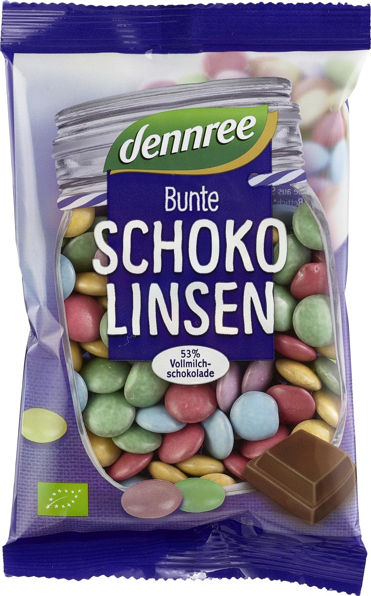 Bunte Bio-Schokolinsen bieten reinen Genuss. Die bunten dennree Schokolinsen werden aus feiner Vollmilchschokolade hergestellt und mit bunter Zuckerglasur überzogen. Mit ihrem zartschmelzendem Kern und ihrem knackigen Biss begeistern sie Groß und Klein. Genießen Sie den unwiderstehlich-schokoladigen Geschmack.
