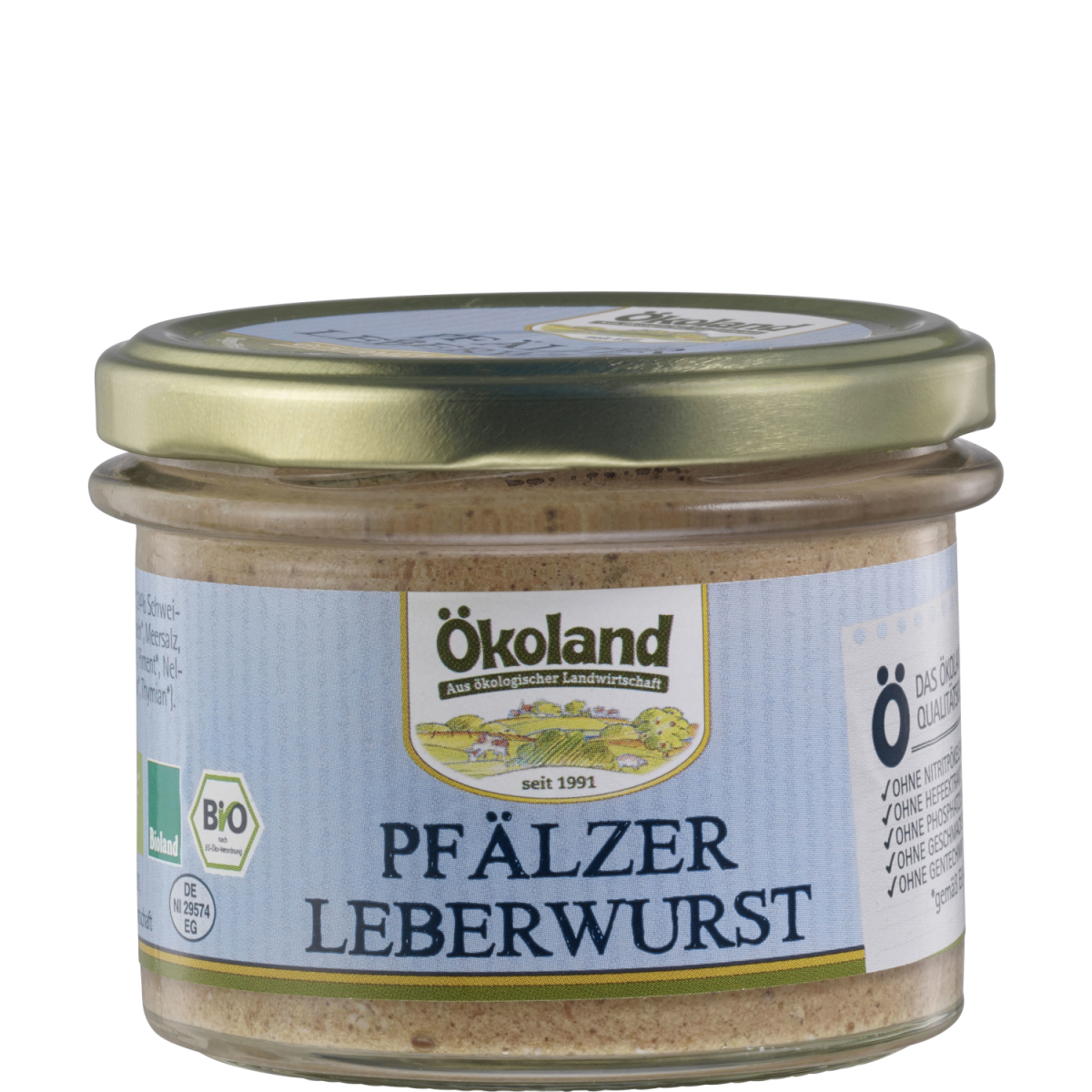 Ökolands Pfälzer Leberwurst ist eine besonders herzhafte Wurst-Spezialität. Sie zeichnet sich durch einen hohen Fleischanteil aus bestem Bio-Schweinefleisch mit weniger Fett aus. Die etwas grobe Struktur sowie die traditionelle Würzung mit intensiver Kräuternote macht den einzigartigen Geschmack aus. Im praktischen Zylinderglas leicht entnehmbar.