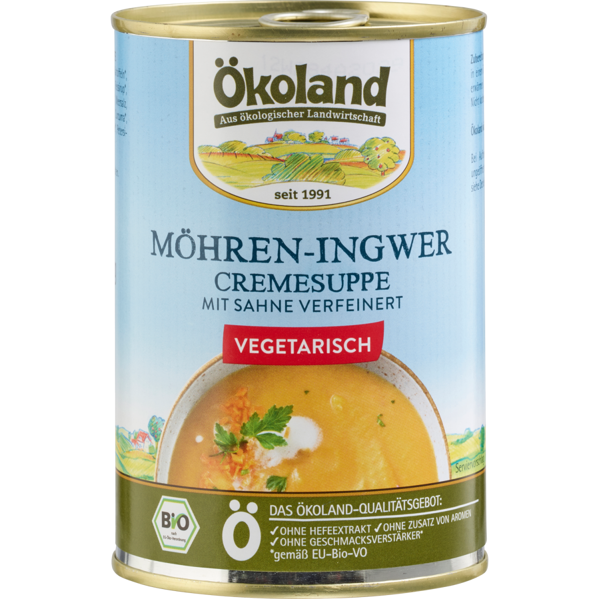 Möhre, auch Karotten oder Rübli genannt, gehören zu den beliebtesten Gemüsearten in Europa. Sie stammen ursprünglich aus Kleinasien, heute sind über 300 Sorten in verschiedenen Farben und Formen bekannt. Mit Ingwer verfeinert, ist die Ökoland Möhren Ingwer Cremesuppe eine frische, moderne Variante der klassischen Möhrensuppe. Sie wird mit verschiedenen Gemüsearten zubereitet - der würzige Ingwer gibt dem Ganzen den Pfiff, die Sahne macht sie zu einem cremigen Genuss.