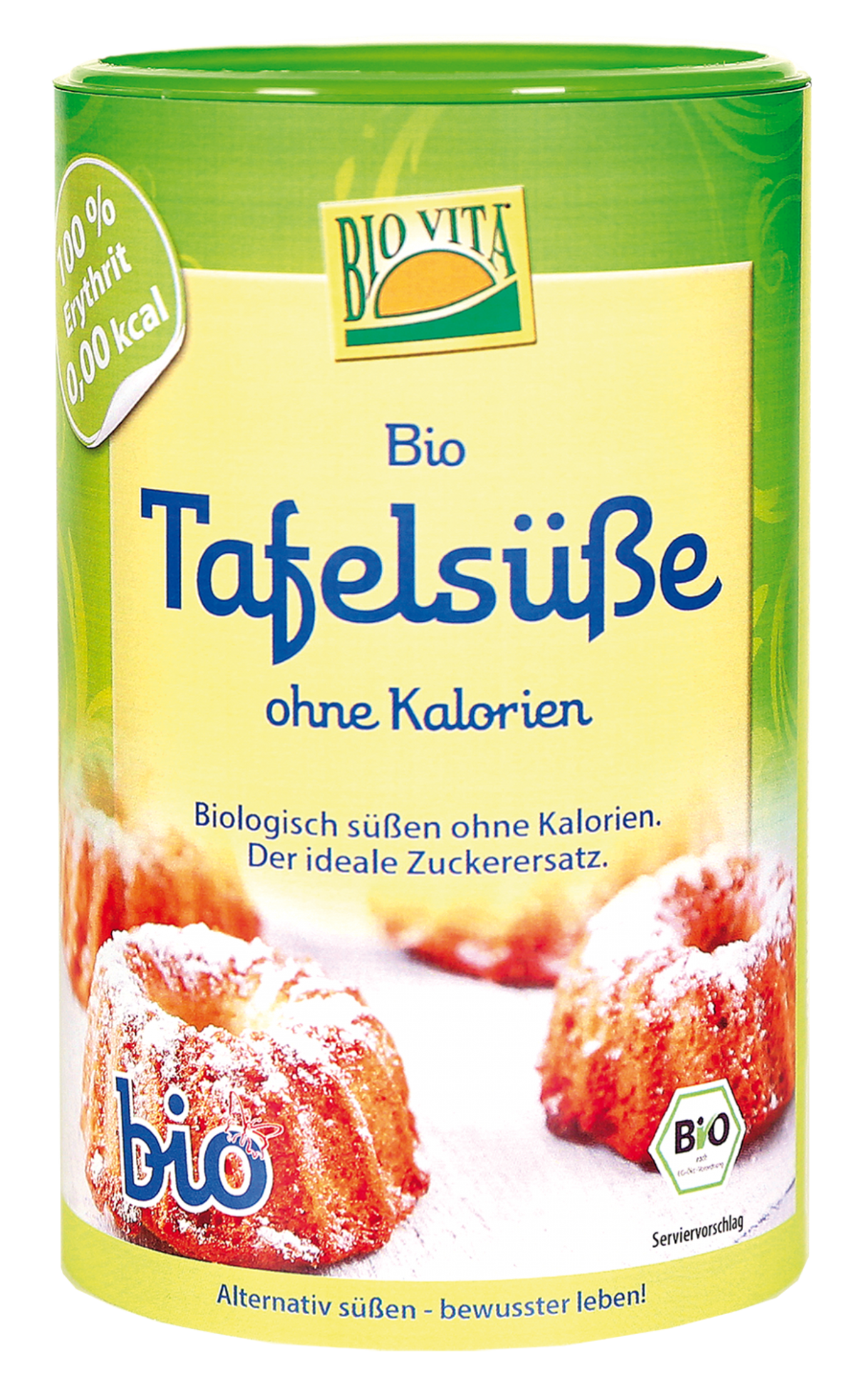 Bio Tafelsüße auf der Grundlage Bio Erythrit. Die kalorienfreie Zuckeralternative für alle, die sich bewusst ernähren wollen. Geschmacklich dem Zucker sehr ähnlich ist Bio Tafelsüße ideal zum Süßen von Gebäck, Torten, Getränken und vielem mehr.