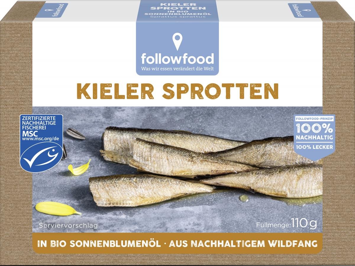 Kieler Sprotten sind eine altes nordisches, traditionelles Gericht aus Schleswig-Holstein. Heutzutage gelten sie als Delikatesse, jedoch hatten sie im 19. Jahrhundert ihren Status als Volksnahrung. Die followfood Sprotten aus nachhaltigem Wildfang werden ohne Kopf in Bio-Sonnenblumenöl konserviert. Sie werden zuvor geräuchert, dies verleiht ihnen den besonderen goldenen Schimmer.