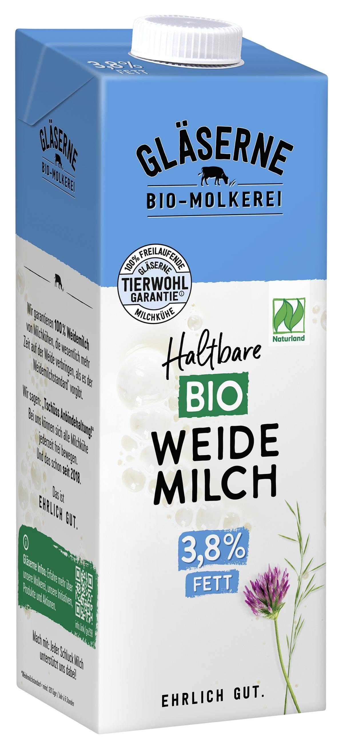 Gläserne Molkerei H-Vollmilch 3,8%, 1 ltr Packung