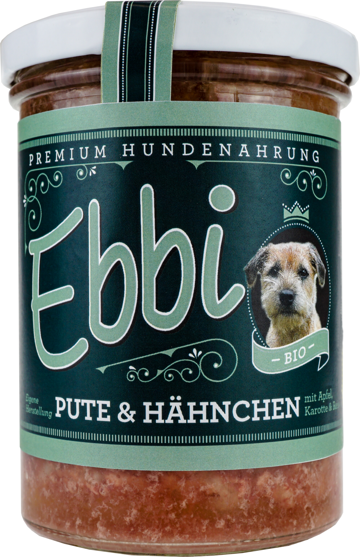 Bio Hundenahrung im Glas aus eigener Herstellung mit offener Deklaration - ohne Verwendung von Konservierungsmitteln, Füll- und Lockstoffen, Aromen und Farbstoffe, Zucker und Geschmacksverstärker sowie Tiermehle.