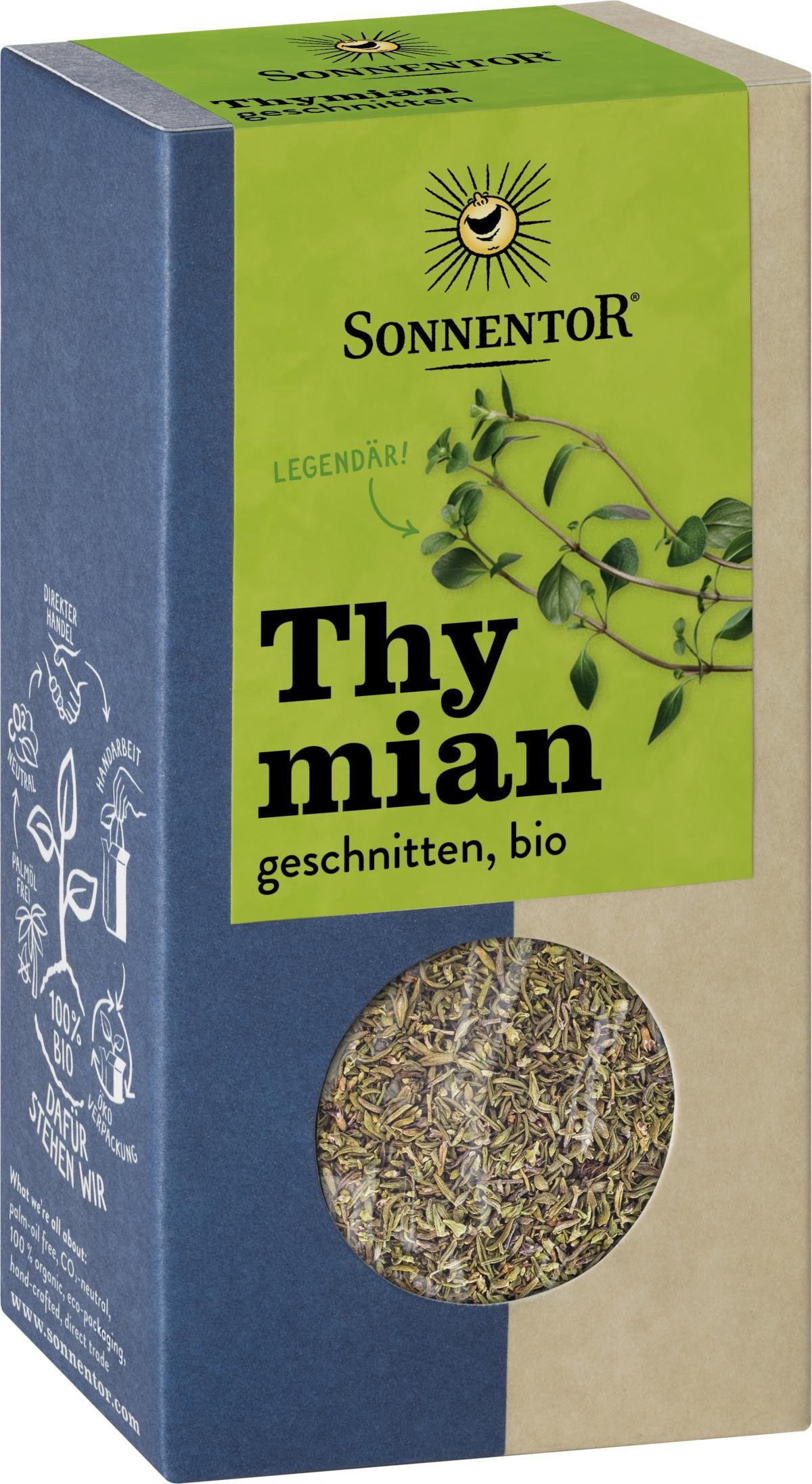 Thymian ist im Mittelmeerraum beheimatet. Der Lippenblütler kommt auch oft wild vor. Thymian schmeckt süßlich, würzig und herb. Er verfeinert als Würzkraut hervorragend Kartoffel, Fisch, Geflügel, Lamm oder Kalb.
