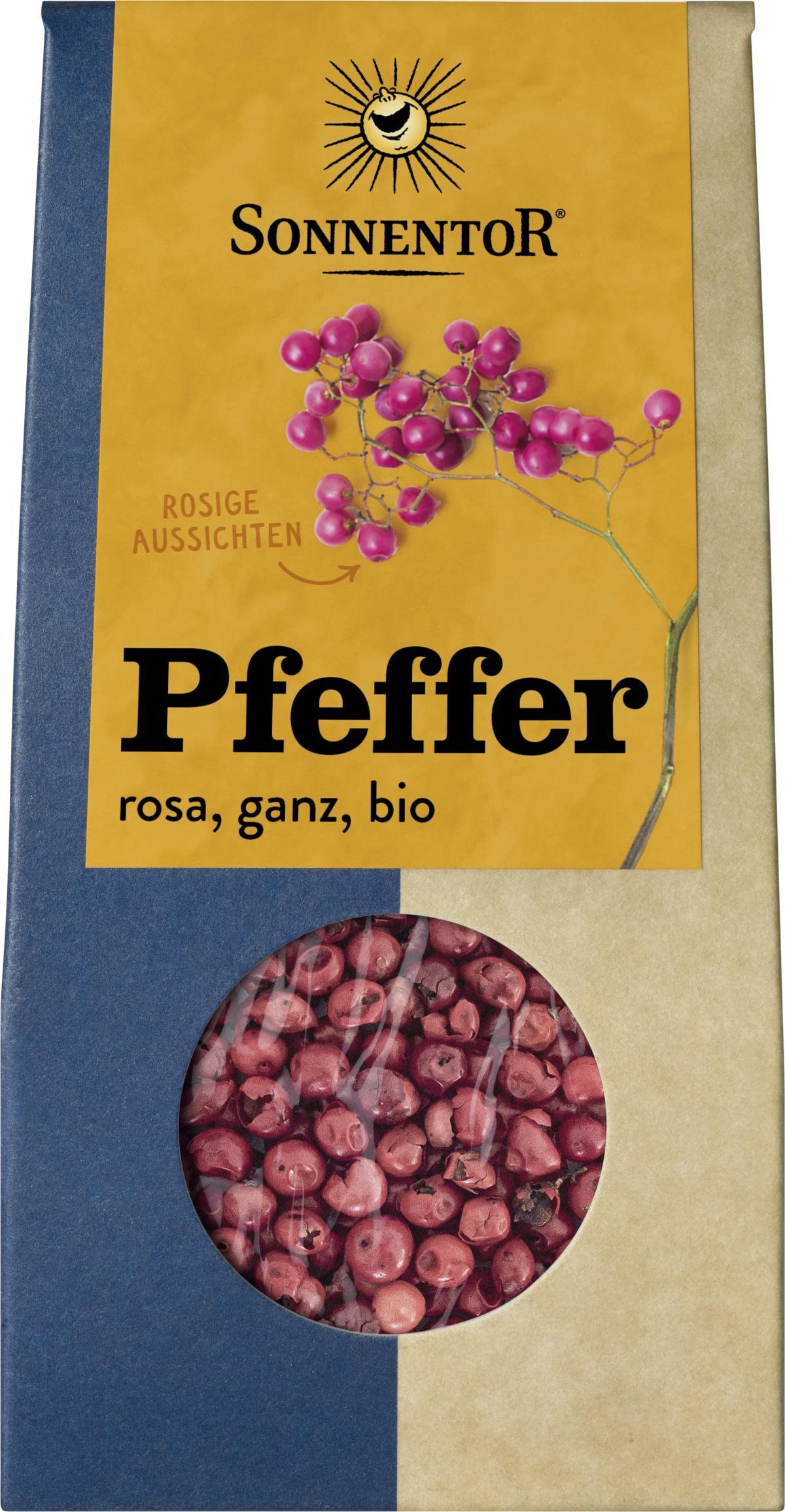 Rosa Pfeffer ist botanisch nicht mit dem Pfeffer verwandt. Er stammt vom Schinus-Baum, verdankt seinen Namen seiner Form und seinem Geschmack. Rosa Pfeffer passt gut zu Fisch, Spargel und Gemüse, gibt aber auch Schokolade das gewisse Etwas.