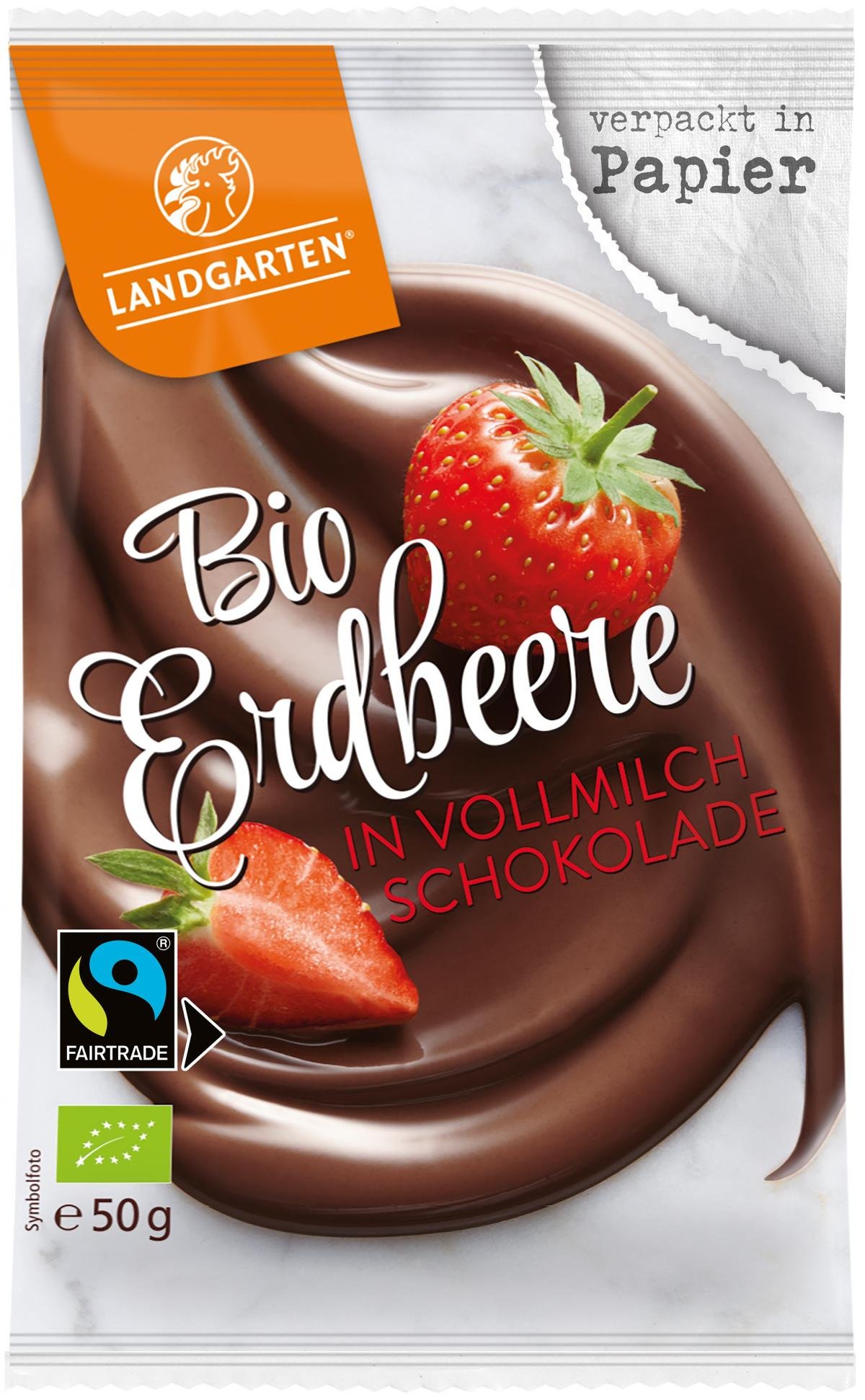 Landgarten Erdbeeren in Vollmilchschokolade, 50 gr
