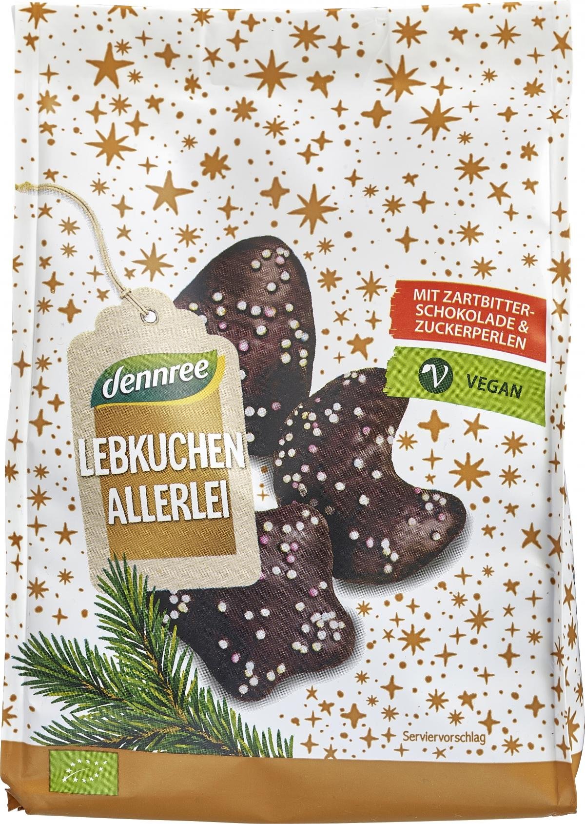 Das vegane Lebkuchenallerlei ist umhüllt von feiner Zartbitterschokolade und ist geschmückt mit bunten Zuckerperlen. Genießen Sie den würzig-süßen Geschmack.