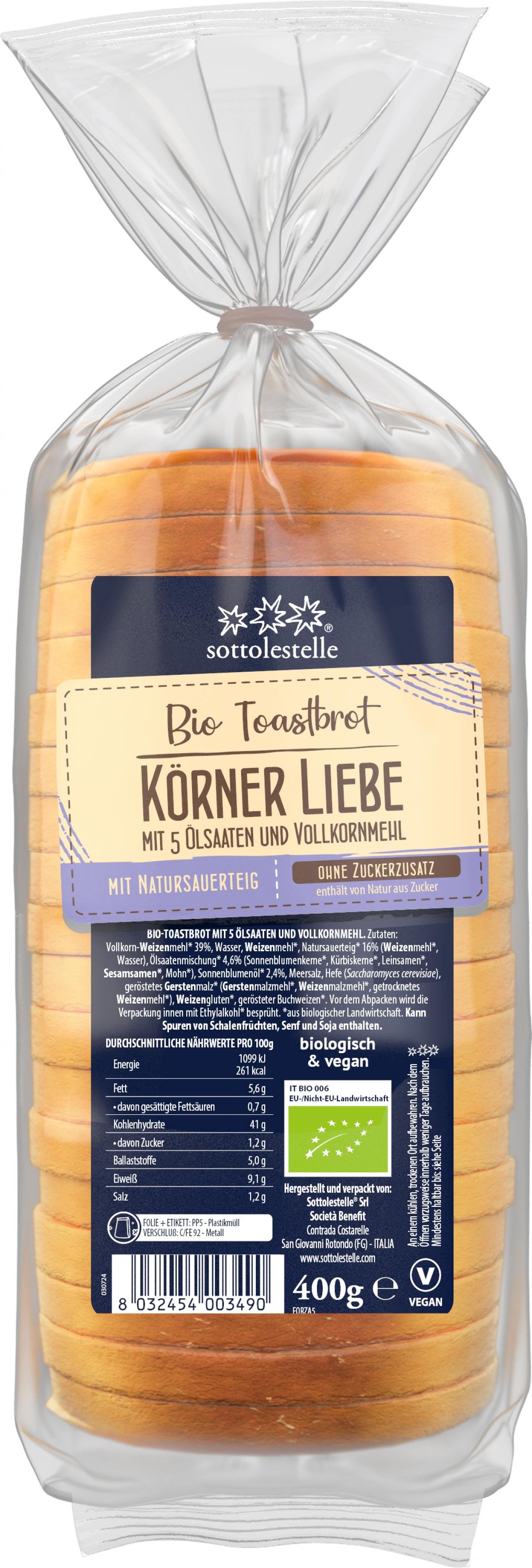 VOLLKORNWEIZENMEHL *39 %, Wasser, WEIZENMEHL*, Natursauerteig*(WEIZENmehl*, Wasser) 16 %, Ölsaatenmischung 4,6 % (Sonnenblumenkerne*, Kürbiskerne*, Leinsamen*, SESAMSAMEN*, Mohn*), Sonnenblumenöl* 2,4 %, Meersalz, Hefe (Saccharomyces cerevisiae),geröstetes GERSTENMALZ*( GERSTENmalzmehl*,WEIZENmalzmehl,getrocknetes WEIZENmehl*), WEIZENGLUTEN*, gerösteter Buchweizen*.