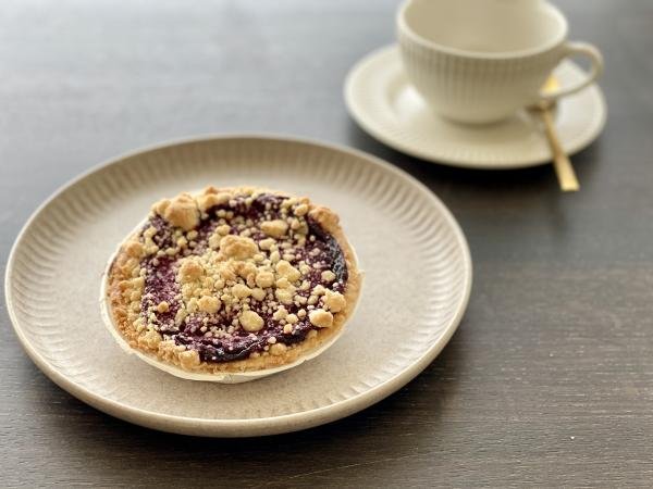 Bestreuung: DINKELMEHL 812* (9%), Pflanzenmargarine (Kokosöl*, Sheabutter*, Wasser, Sonnenblumenöl*, Karottensaftkonzentrat*, Zitronensaftkonzentrat*, Emulgator: Lecithin*, Meersalz), Rohrohrzucker*