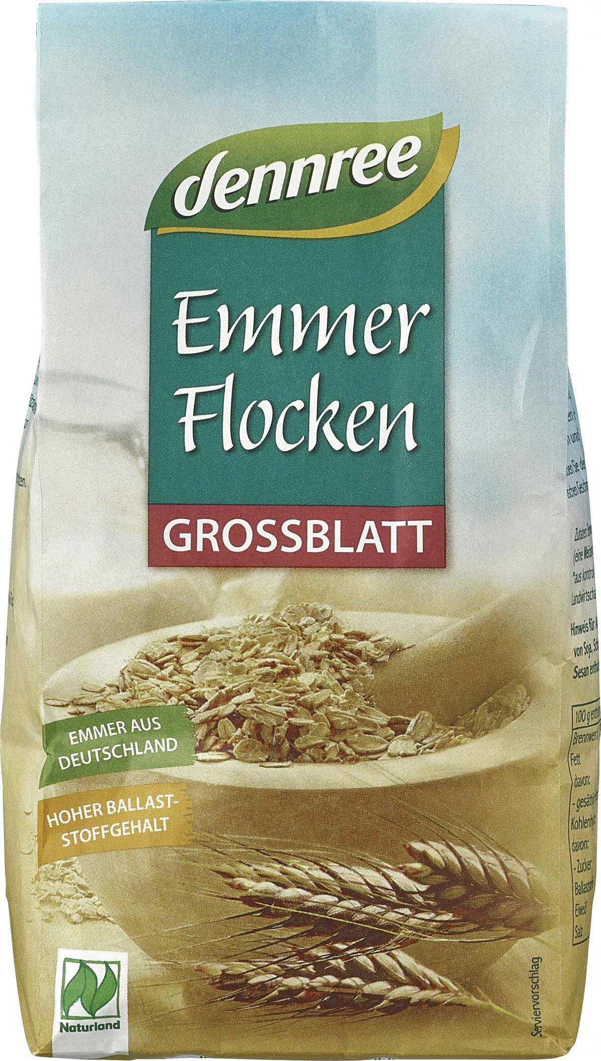 Bio-Emmerflocken Großblatt bieten reinen Genuss. Für die kernigen dennree Emmerflocken Großblatt werden ausgewählte Emmerkörner aus kontrolliert biologischer Landwirtschaft gedämpft und zu Flocken ausgewalzt. Sie eignen sich besonders gut für die Zubereitung von Süßspeisen oder Müsli sowie zum Kochen und Backen. Genießen Sie den natürlich-aromatischen Geschmack.