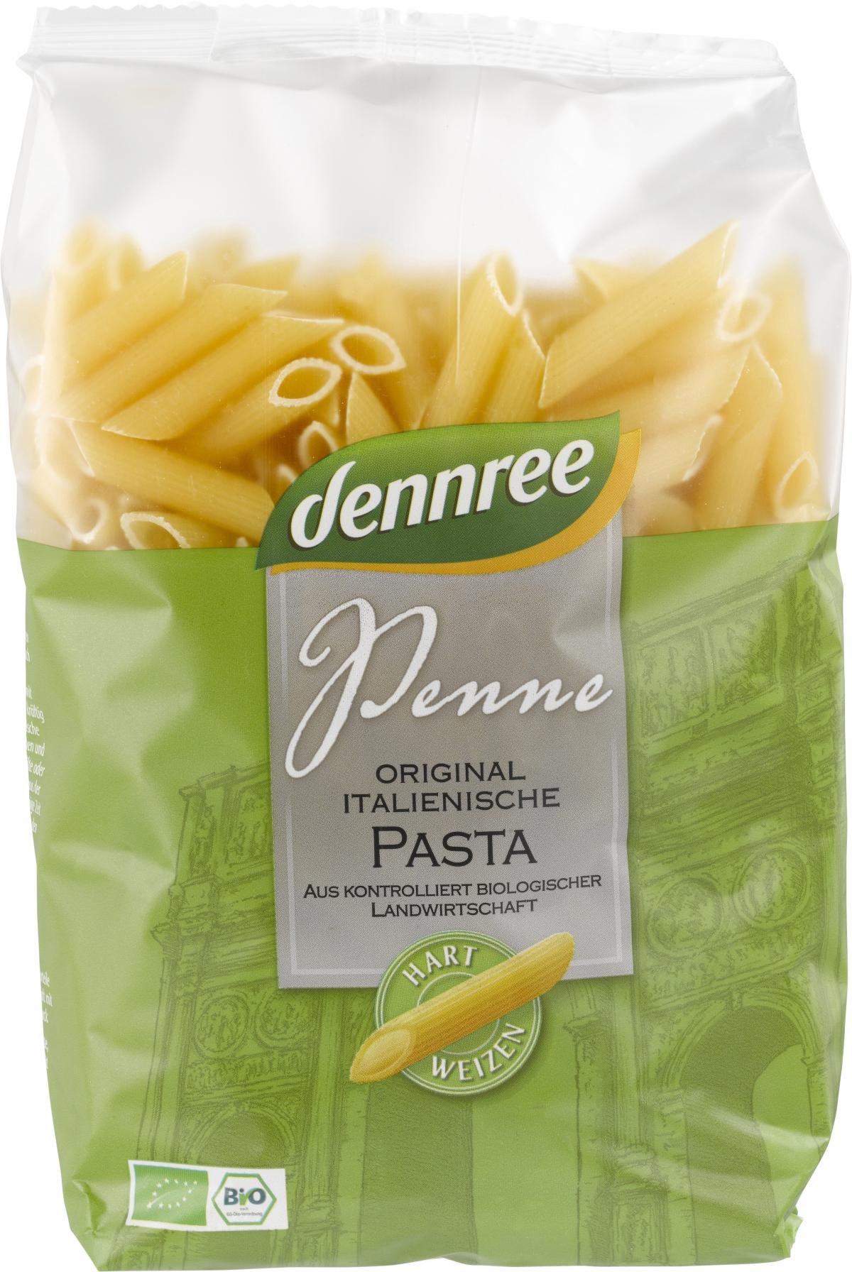 Bio-Hartweizen-Penne bieten reinen Genuss. Für die dennree Hartweizen-Penne wird nur ausgewählter Hartweizen aus kontrolliert biologischer Landwirtschaft verwendet und nach original italienischem Rezept schonend verarbeitet. Genießen Sie den exzellenten Geschmack und den idealen "al dente" Biss der dennree Pasta.