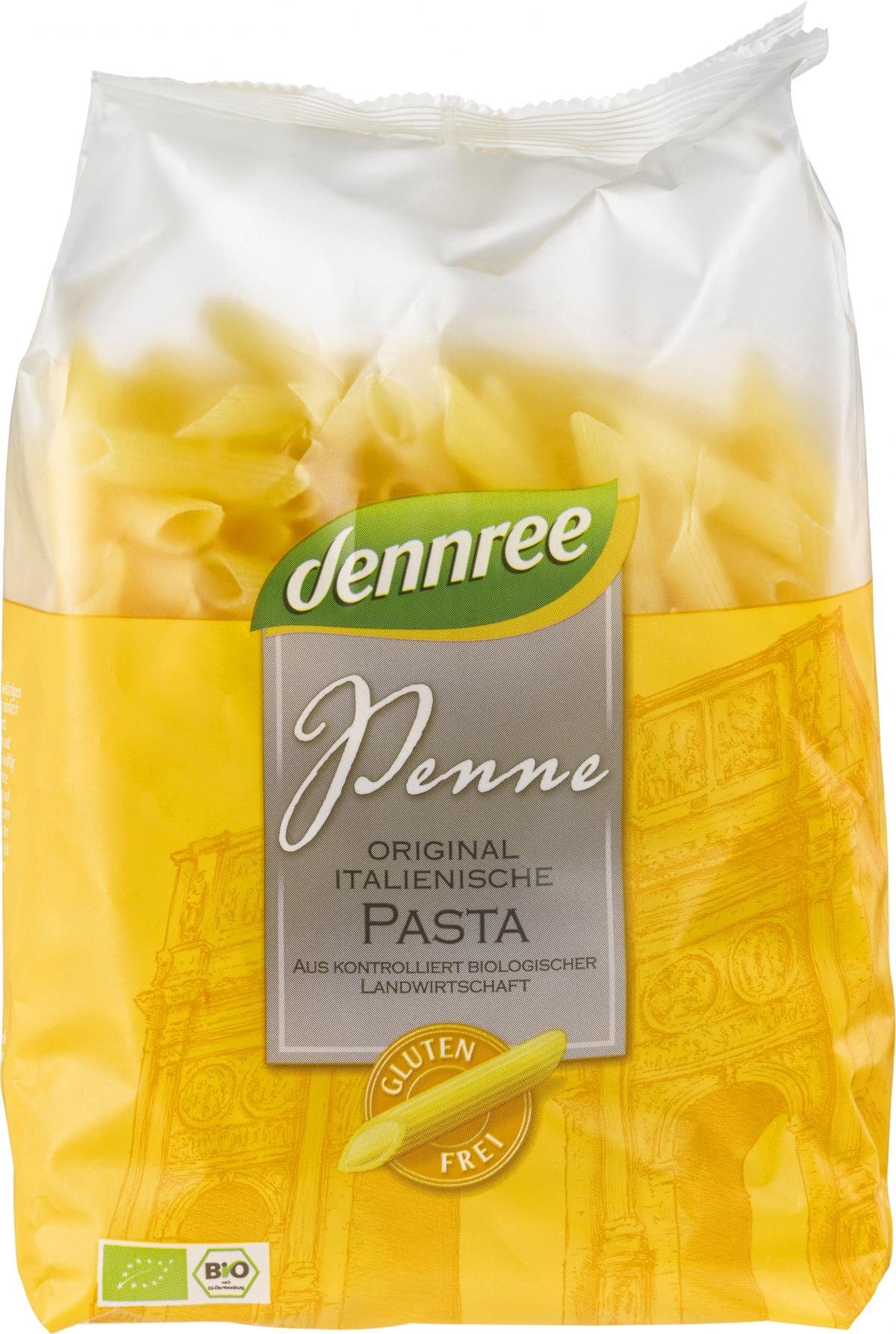 Glutenfreie Bio-Penne bieten reinen Genuss. Für die glutenfreien dennree Penne werden nur ausgewählter Mais und Reis aus kontrolliert biologischer Landwirtschaft verwendet. Durch eine exklusive Rezeptur und die schonende Verarbeitung ist es gelungen, eine glutenfreie Pasta zu kreieren, die in ihrer Farbe und Kocheigenschaft der italienischen Weizenpasta ähnelt. Genießen Sie den exzellenten Geschmack und den idealen "al dente" Biss der dennree Pasta.
