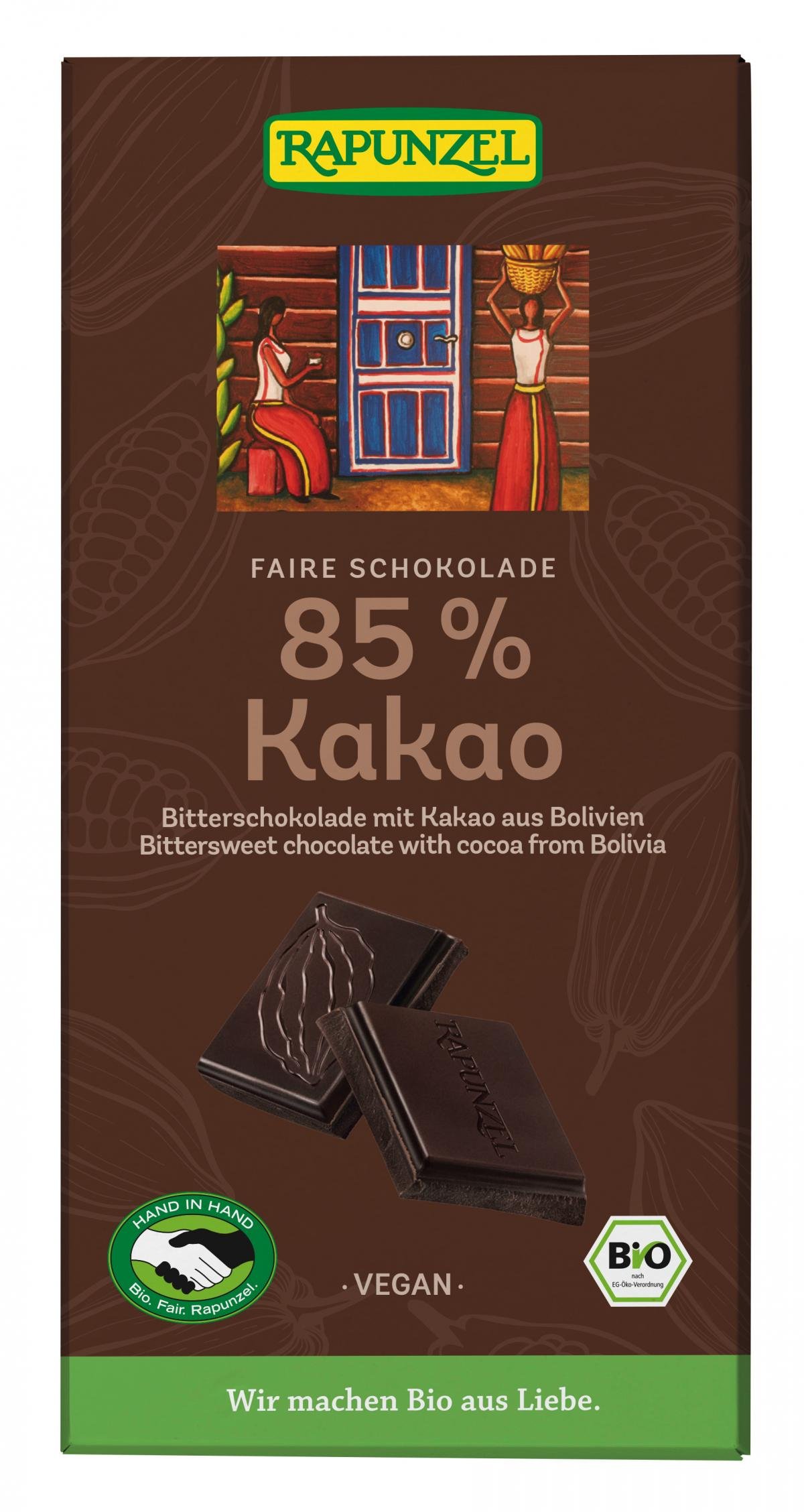 Eine Schokolade für Kenner. Mit dem besonders hohen Anteil an feinherbem aromatischem Kakao aus Bolivien ist diese Bitterschokolade ein zartherber und purer Schokoladengenuss. Rapunzel Schokolade steht für höchste Qualität nach Schweizer Herstellertradition verbunden mit wertvollen fair gehandelten Zutaten aus ökologischem Anbau. Das intensive Conchieren ist neben den wertvollen Rohstoffen das eigentliche Geheimnis des wahren Schokoladengenusses. Durch die Kunst des Conchierens entwickelt sich der anfänglich noch verborgene Reichtum an kakaoeigenen Aromen Stufe um Stufe bis zur vollen Entfaltung. Gleichzeitig entsteht vollkommene Feinheit und der unvergleichlich zarte Schmelz.